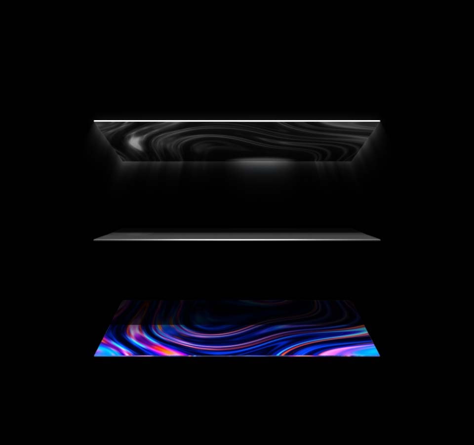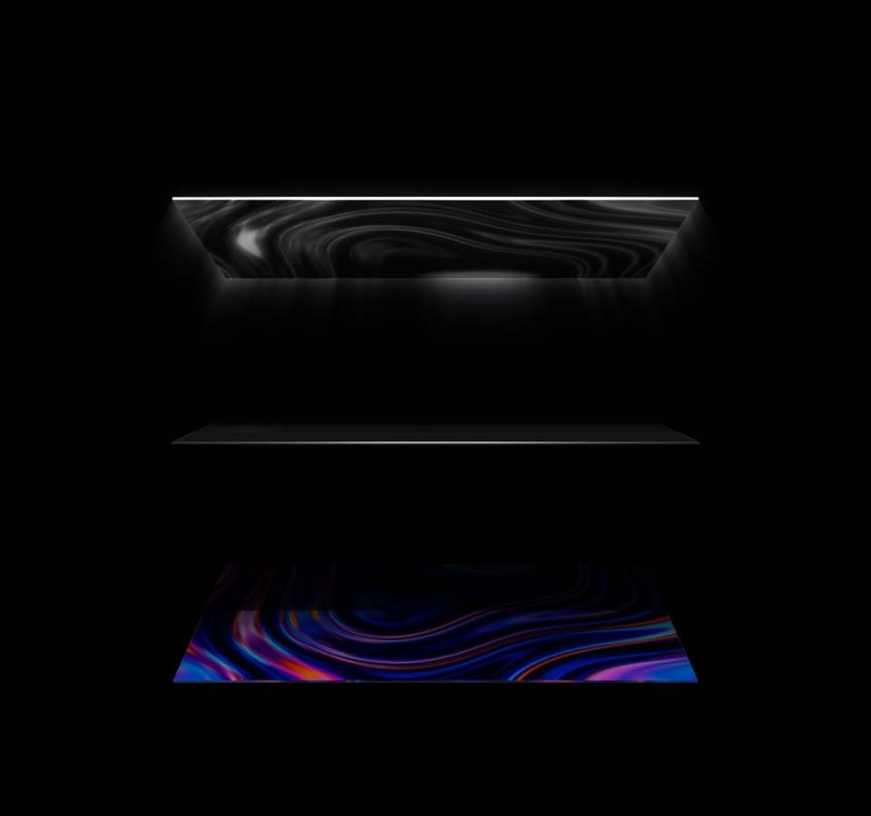 The LG OLED evo TV appears from the shadows then fills the screen with a vivid and abstract floral picture overlayed with the text "This is the OLED evo difference"