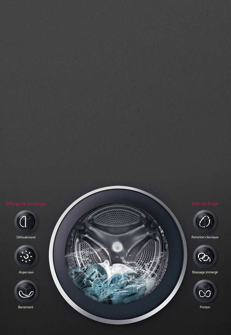 Pour quel résultat ? L’optimisation automatique des mouvements de lavage de votre machine permet une meilleure protection des tissus, pour conserver plus longtemps l’aspect de vos vêtements. Le moteur DirectDrive™ offre une technologie à 6 mouvements pour un lavage efficace et un soin du linge inégalé.
