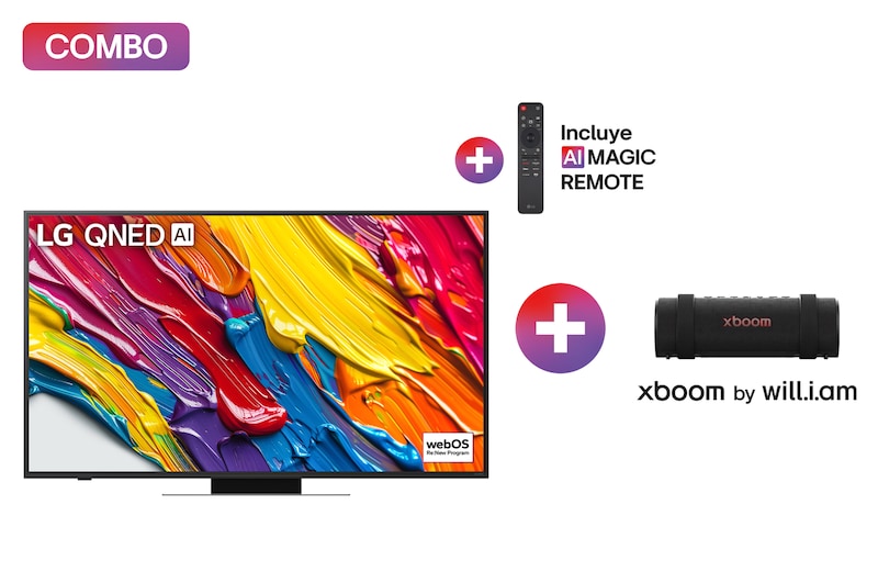 Pantalla 65 pulgadas LG QNED AI QNED83 4K SMART TV 2025 + LG xboom Grab by will.i.am | Bocina Bluetooth portátil | xboom Signature Sound con portabilidad suprema