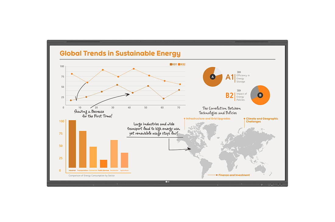 LG CreateBoard is designed with front display ports, making it easy for users to connect or disconnect cables. Additionally, its front-facing speakers facilitate content delivery with improved sound quality.