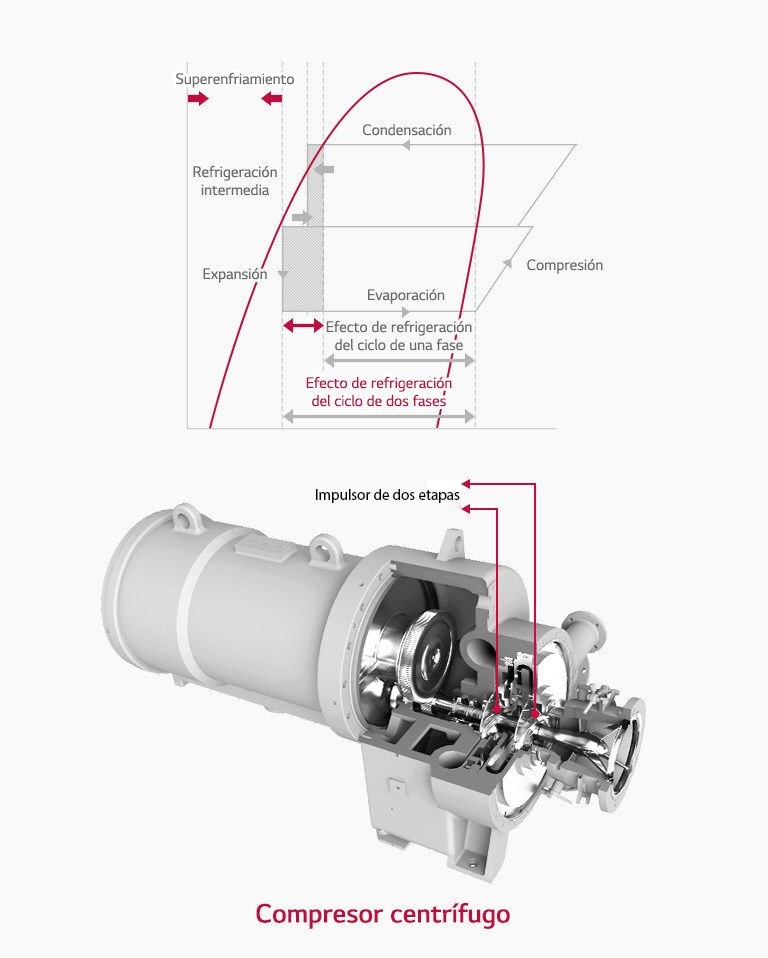 La bomba de calor centrífuga LG es una solución única y económica que utiliza la energía no utilizada como fuente de calor.