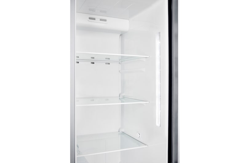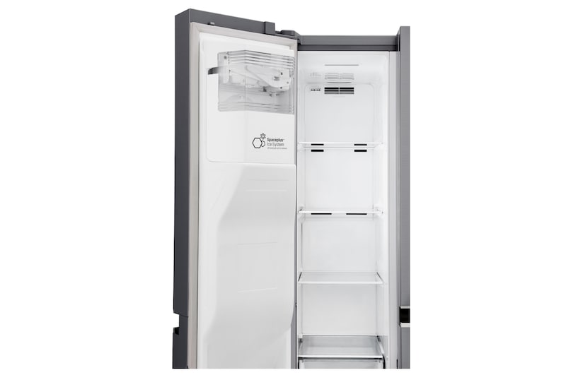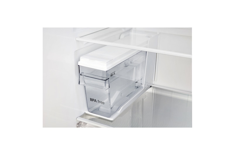 Nuestro innovador sistema de fabricación de hielo está integrado a la puerta de la refrigeradora, lo que brinda un amplio espacio en los estantes interiores y permite disponer de más espacio de almacenamiento en la puerta.