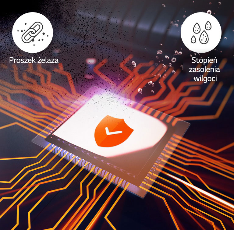 Ponadto produkt może zostać narażony na działanie kurzu i wilgoci podczas konserwacji. Jednak specjalna powłoka chroni główną płytę obwodu przed kurzem, proszkiem żelaza, wilgocią itp.