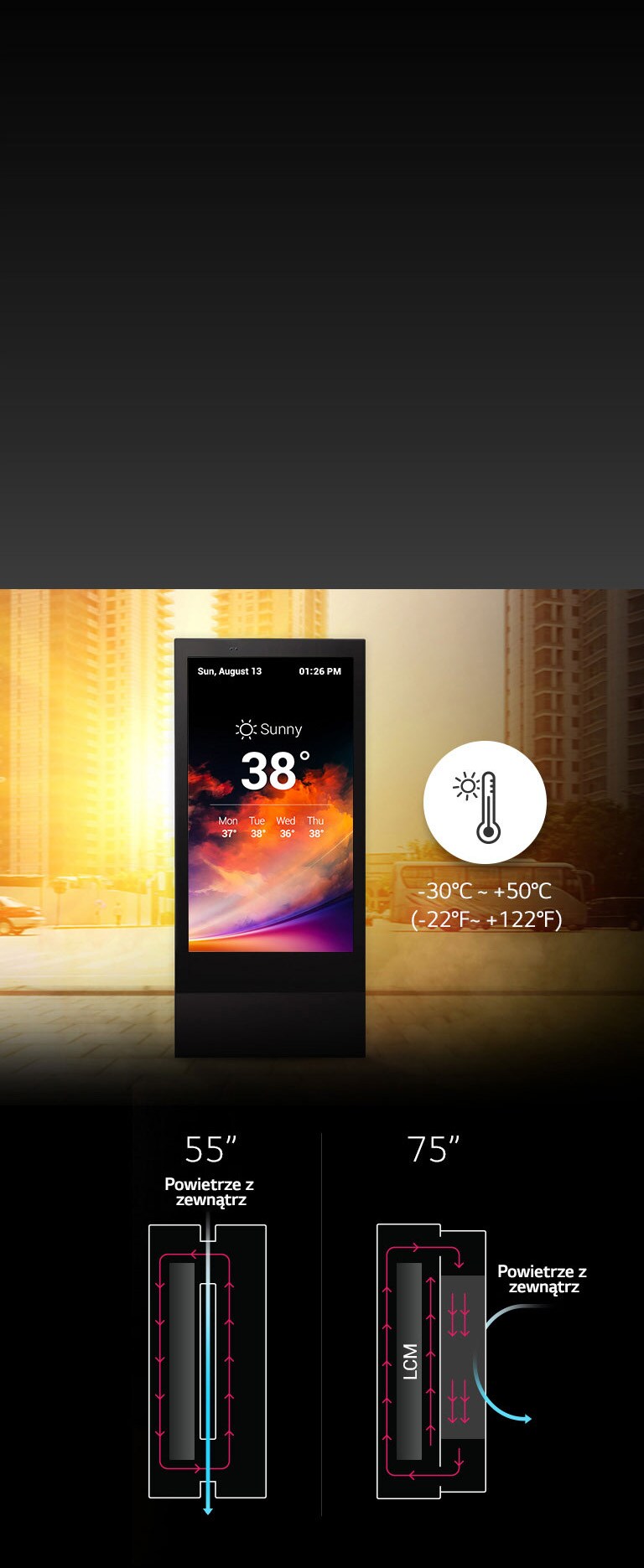 Wyjątkowa niezawodność w wysokich temperaturach Opatentowana technologia chłodzenia efektywnie odprowadza ciepło generowane przez podzespoły produktu, nie wpuszczając do wnętrza powietrza z zewnątrz.