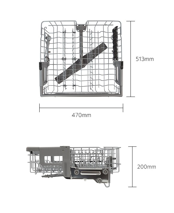 - Odpowiedni do mycia delikatnych przedmiotów, takich jak małe talerze, długie sztućce, kubki, szklanki