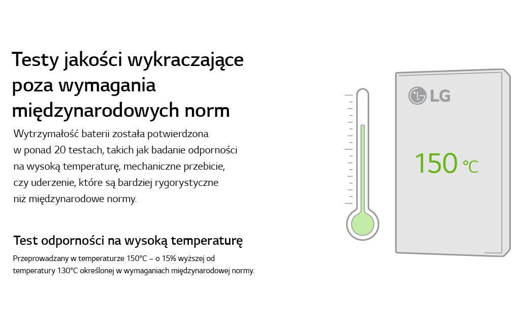 Pragnąc stworzyć najbezpieczniejszy, a zarazem najdłużej działający smartfon na rynku, gigant technologiczny LG poddał swój smartfon G6 serii 20 testów w laboratorium Battery Evolution Lab w LG Digital Park. Żadne inne urządzenie tego typu nie było tak intensywnie testowane. Próby LG G6 przeprowadzono m.in. w temperaturze o 15 procent wyższej niż przewidują międzynarodowe normy dotyczące testowania akumulatorów w wysokich temperaturach.