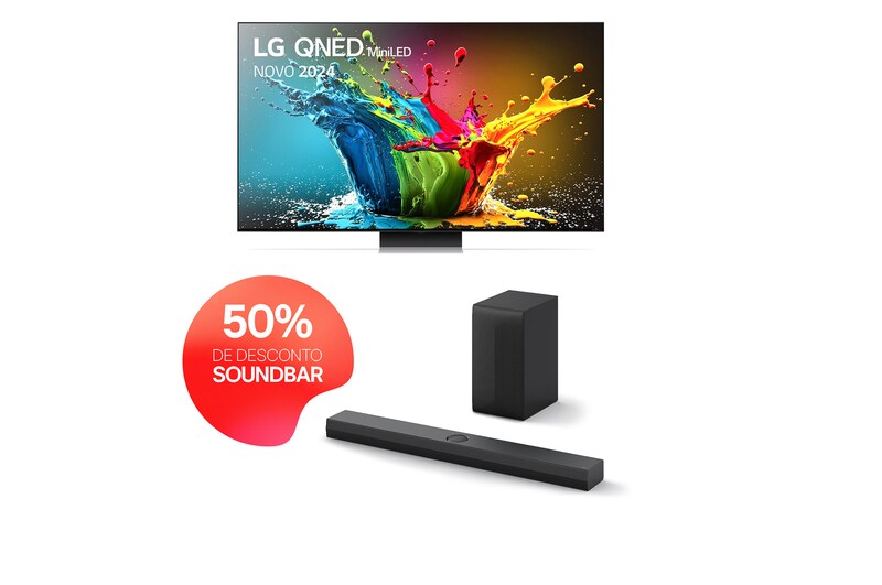 LG QNED MiniLED QNED91 4K Smart TV de 65 polegadas + LG Soundbar Dolby Atmos com 3.1.1 canais e 400W de potência
