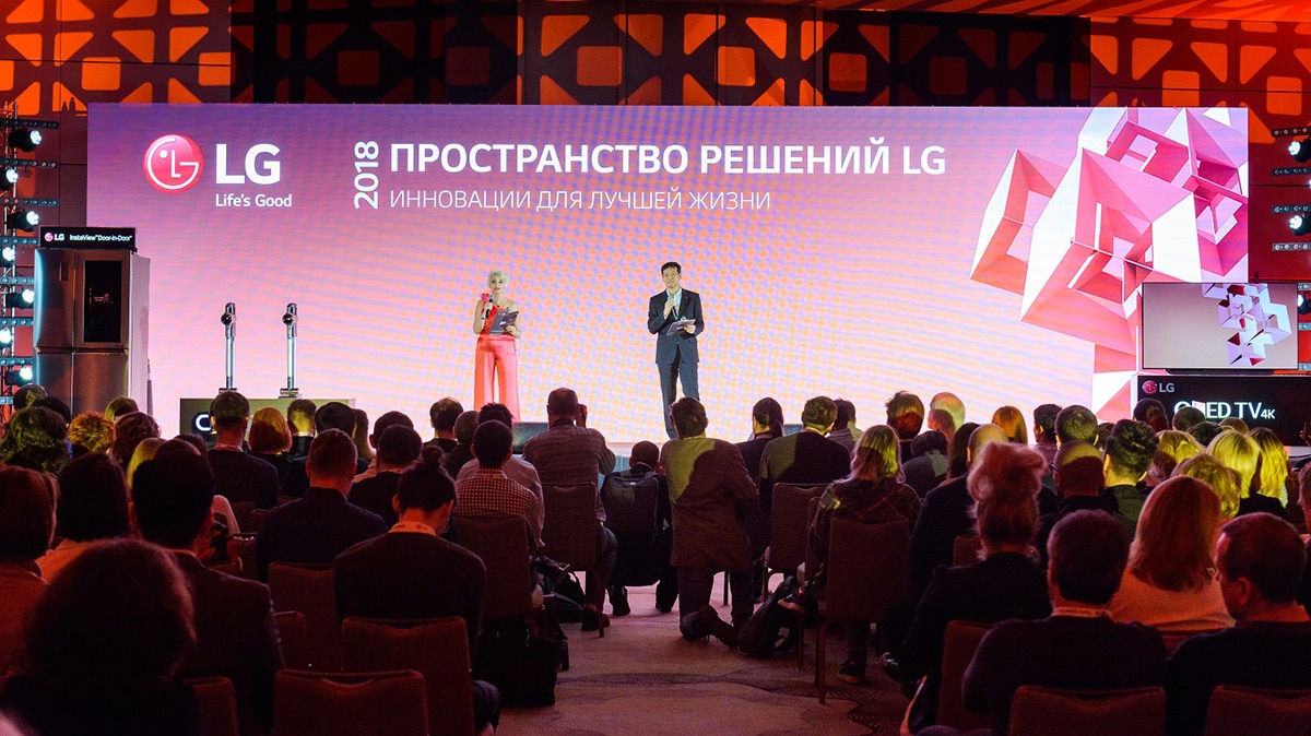МОСКВА, 9 апреля 2018 г. — В центре нового бизнес-и спортивного кластера «ВТБ Арена Парк», а именно в отеле Hyatt Regency Moscow Petrovsky Park компания LG в год своего 60-летия (1958-2018) представила новую аудио-видео-бытовую технику и даже роботов! #ПространствоРешенийLG объединило всю премиальную бытовую технику, включающую линейку холодильников в черном цвете - InstaView Door-in-Door и P-Iskra, стиральную машину TWINWash, систему для ухода за одеждой с помощью пара LG Styler с увеличенной загрузкой, новую серию беспроводных пылесосов CordZero™, микроволновые печи NeoChef™ и встраиваемую технику LG Studio. Ультрапремиальный бренд LG SIGNATURE представлен элегантным холодильником с функцией InstaView Door-in-Door™, высокотехнологичной стиральной машиной TWINWash™, футуристическим климатическим комплексом и 77 дюймовым OLED-телевизором, поддерживающим разрешение 4K HDR. Особое внимание гостей привлекла интеллектуальная техника от LG, впервые представленная в России. Робот-газонокосильщик, аккуратно, надежно и, главное, безопасно стрижет газоны, определяя собственное местоположение в любой момент времени и все видимые препятствия - деревья и ограды - на своем пути. Робот-уборщик использует мощные чистящие свойства пылесоса LG HOM-BOT, автономную навигацию и способность избегать столкновений с объектами, и применяет их в коммерческой, общественной среде. Он сам определяет участки, требующие наиболее частой уборки, сохраняет их местонахождение в своей базе данных и вычисляет наиболее эффективные маршруты, чтобы добраться до них. Шоу-рум или #ПространствоРешенийLG, представляющий собой разные жилые зоны, был создан в соавторстве с Аленой Санаевой, известным дизайнером интерьеров из мира моды и основателем школы дизайна Manhattan Design School. Аксессуары и элементы декора интерьера были предоставлены Park Avenue Group на Смоленской. С экспозицией ознакомились также известные российские деятели из мира искусства и шоу-бизнеса – Анита Цой, Екатерина Одинцова, Ольга Кабо, Ирина Безрукова, Анастасия Макеева, Елена Захарова, Павел Санаев, Анастасия Стоцкая, Яна Поплавская, Эвелина Бледанс. Красной нитью через всё мероприятие проходила футбольная тематика, так как телевизоры и проекторы станут настоящим окном в мир для болельщиков, а также отчет о результатах донорского проекта LG масс-медиа и партнерам с известными футболистами, благодаря которому Станислав Черчесов, главный тренер сборной России и Денис Глушаков, чемпион России 2017, амбассадор LG в области телевизоров, посетили мероприятие.