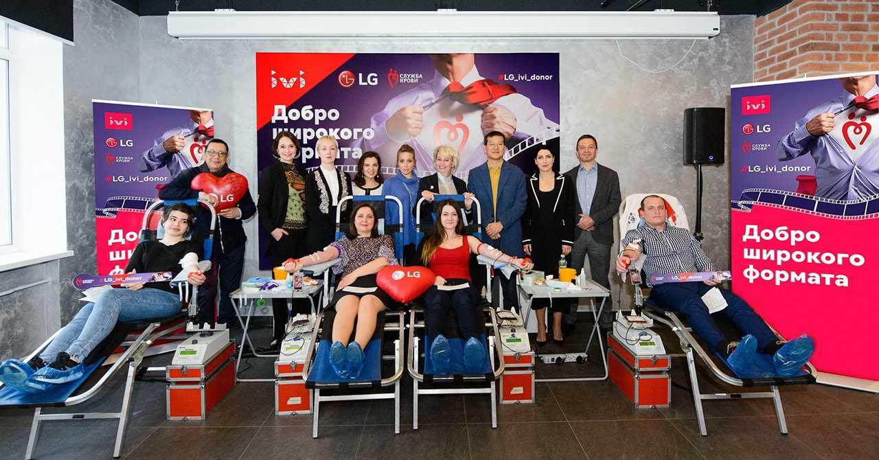 День донора прошел в Москве, в главном офисе ivi, при поддержке Центра крови ФМБА России. В донорской акции приняли участие сотрудники офиса и завода LG и ivi. Президент LG Electronics в России и странах СНГ г-н Иль Хван Ли отметил: «Мы рады активному участию наших давних партнеров в области бизнес и социальных проектов в корпоративном донорском движении LG. Вместе с онлайн-кинотеатром ivi, в важный для всей страны год 75-летия Победы, мы поддерживаем память о доброте доноров в те непростые годы, а также стремление современного поколения россиян к добровольчеству и взаимопомощи». Генеральный директор онлайн-кинотеатра ivi Олег Туманов прокомментировал: «Здорово, что в год нашего десятилетия мы можем напомнить о важности добрых дел – о том, что необходимо сделать добрые дела привычкой. Мы рады, что совместно с LG нам удаётся на своем примере показать, насколько просто спасать жизни, став донором крови».