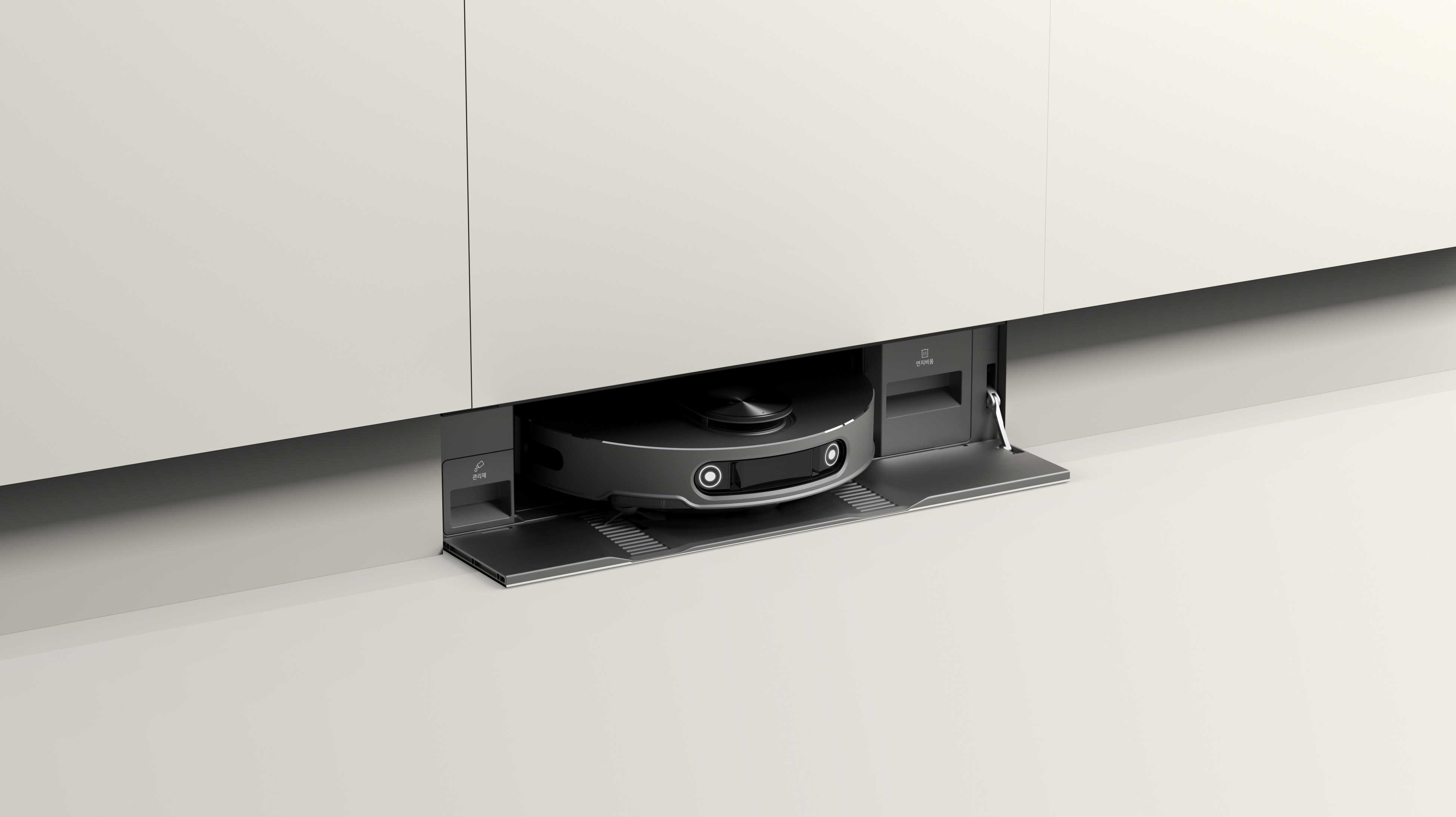 Поскольку модель с паровой уборкой требует подключения док-станции к воде и канализации, LG разработала решение, позволяющее органично интегрировать её в кухонное пространство — например, под раковину. Станция встраивается в кухонную мебель, что позволяет установить её аккуратно и сохранить минималистичный дизайн. В закрытом состоянии девайс незаметен.