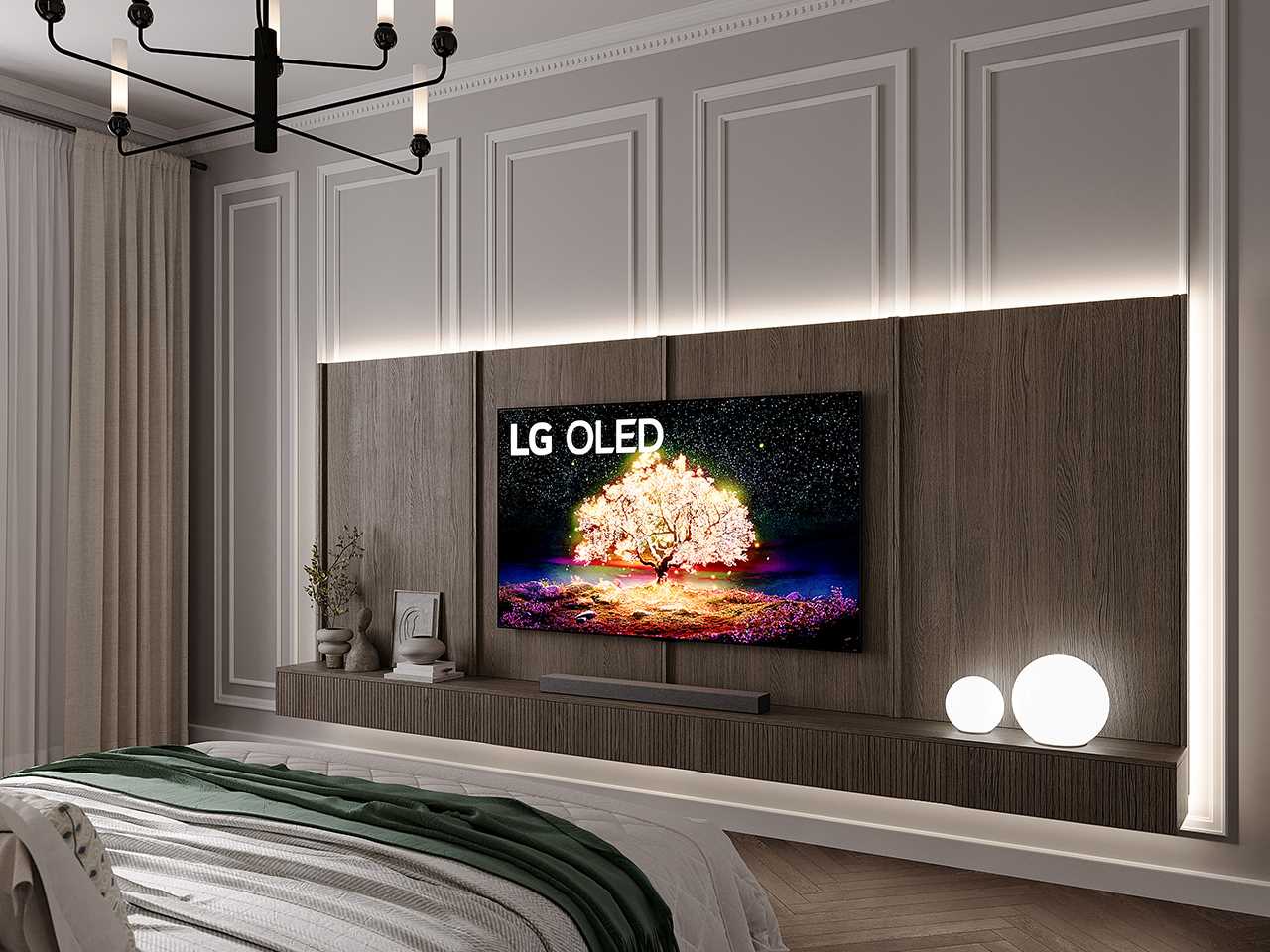 Полезно ли смотреть кино перед сном? Зависит от жанра: лёгкие комедии и мелодрамы с хэппи-эндом помогут снять рабочий стресс, расслабиться и настроиться на позитивную волну. OLED-телевизор LG в тонком корпусе, монтируемый вровень со стеной, впишется в любой дизайнерский стиль. Используйте ТВ или компактный проектор Cine Beam Q для показа расслабляющих видовых роликов в сопровождении медитативной музыки. Сделать звук обволакивающим, глубоким поможет саундбар.