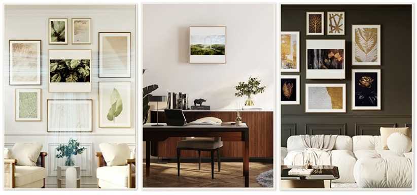 Пусть декор гостиной рассказывает о вас. Увлечённый геймер или кинозритель могут использовать постеры любимых фильмов, игр. Многие любят располагать здесь пейзажи или натюрморты в строгих рамках. Для такого решения подойдёт кондиционер-картина LG, на фронтальной панели которого можно разместить любое изображение.