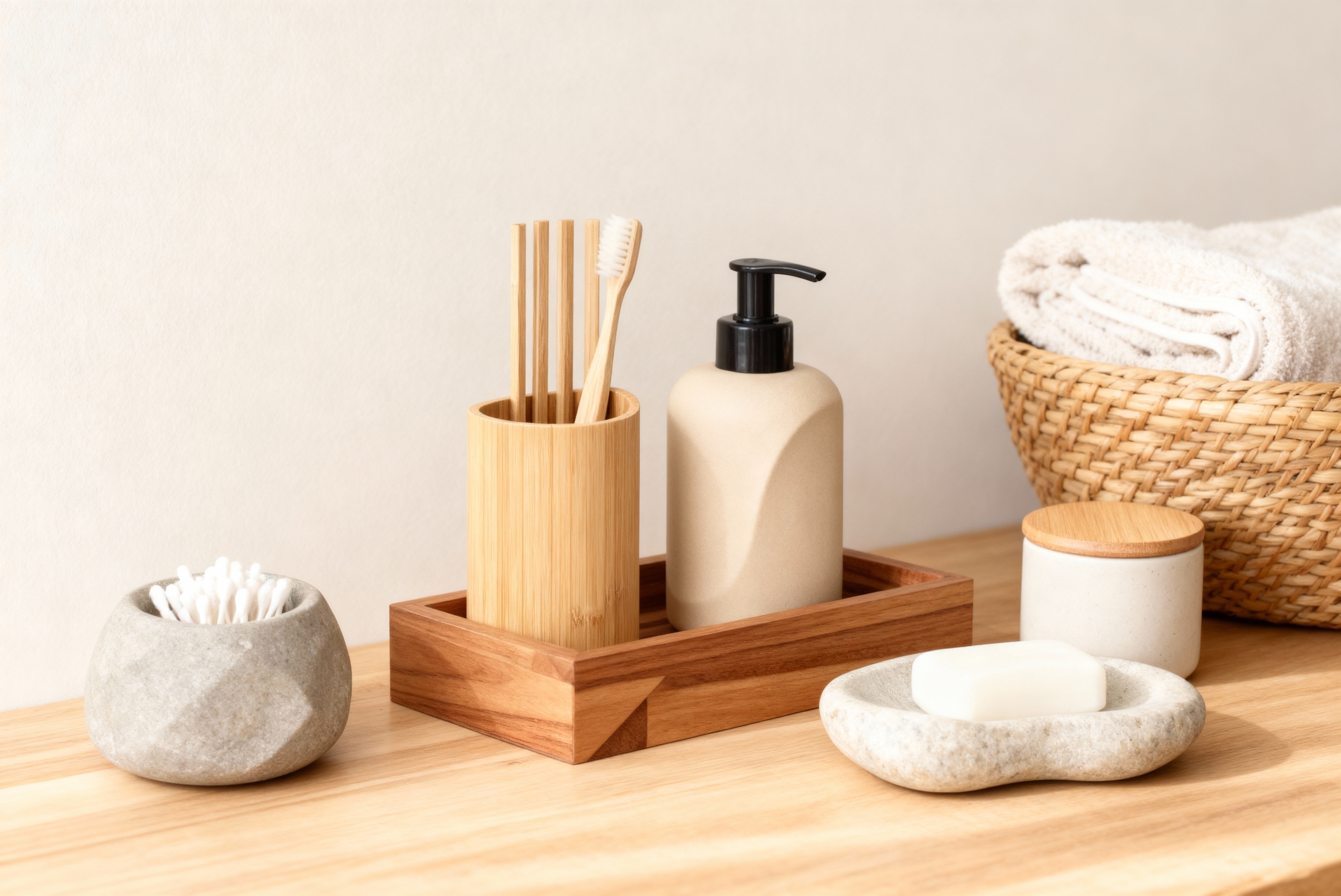Биофильный дизайн предполагает преобладание натуральных материалов, таких как дерево и камень. Живые комнатные растения станут приятным зелёным акцентом и помогут приблизиться к природе. Приветствуется наличие окна для естественного освещения.