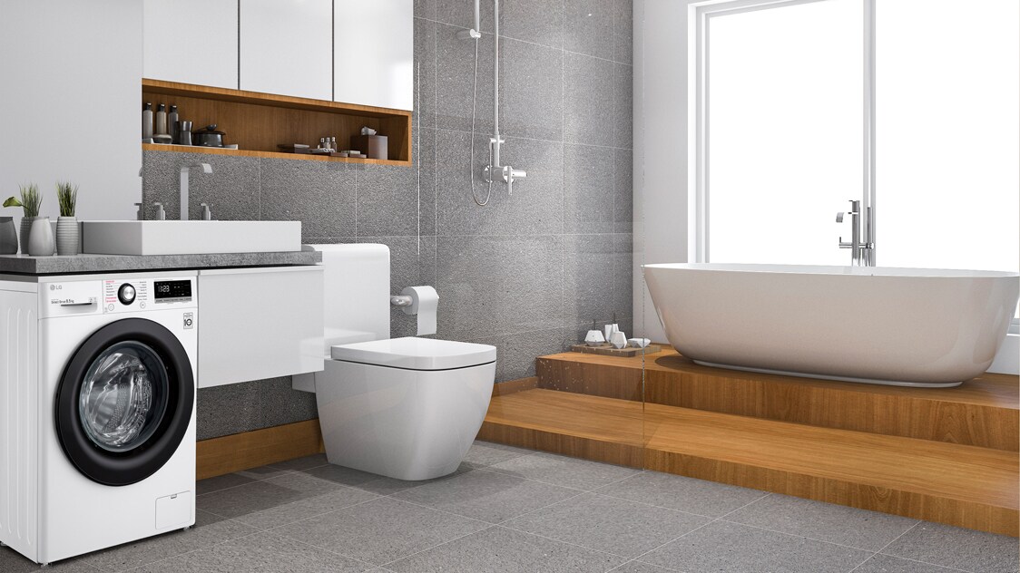 Умная бытовая техника, например, стиральные и сушильные машины, дополняет ванную комнату без риска потерять комфортабельность и превратить её в «прачечную».