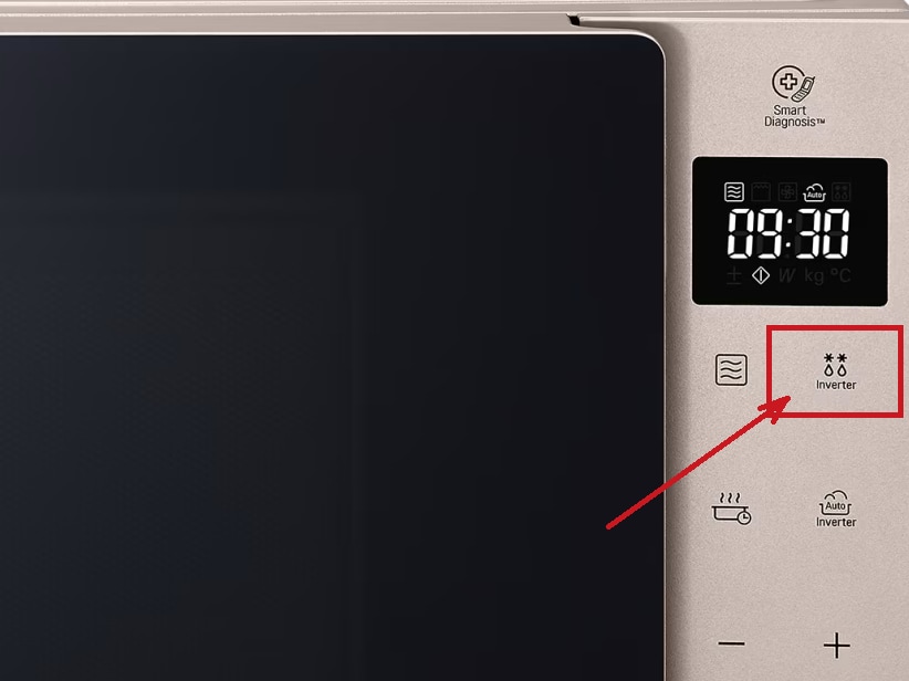 В микроволновых печах LG с инверторной технологией мощность и интервалы нагрева регулируются автоматически для равномерного оттаивания без начала приготовления.