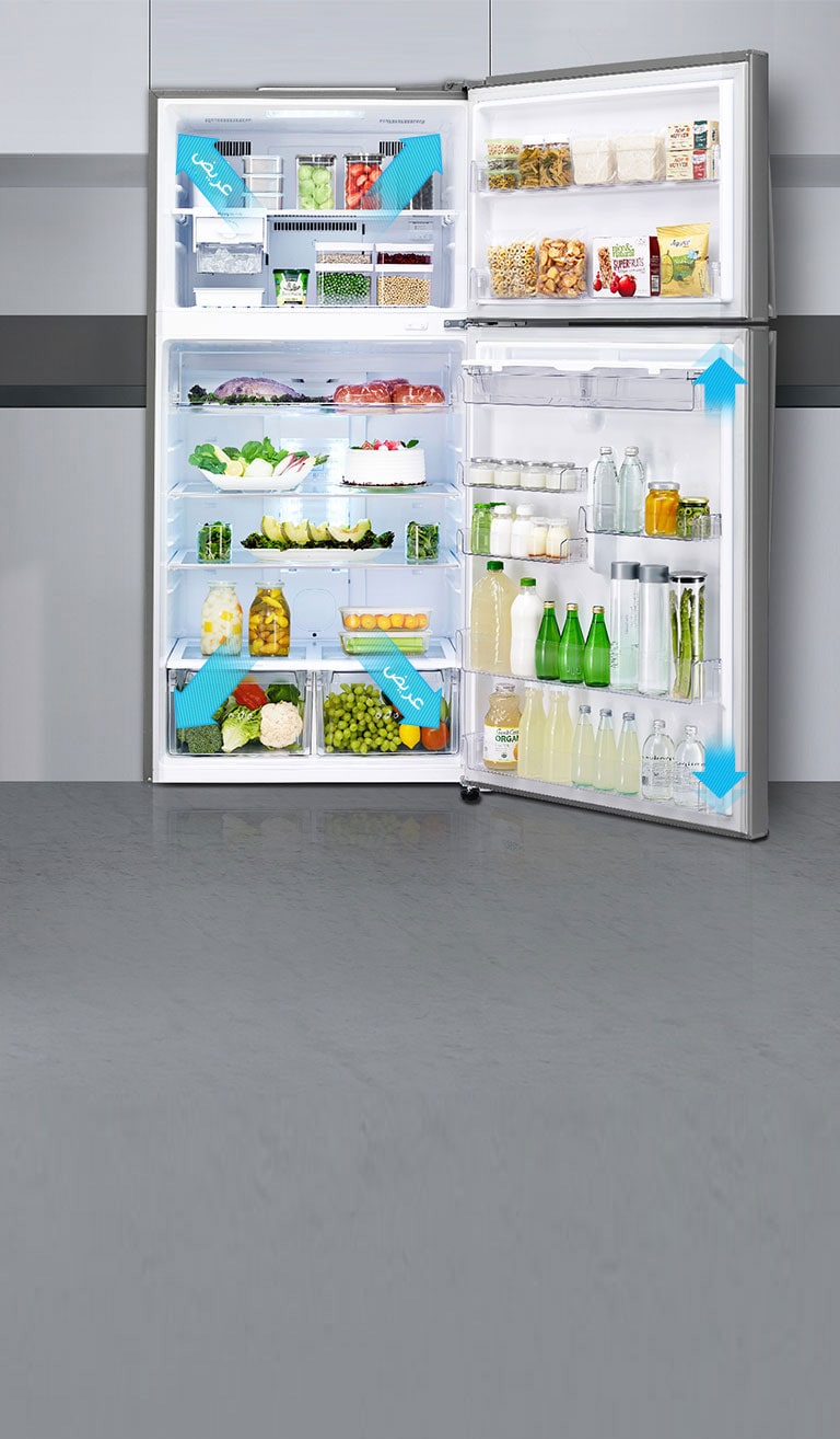 يتم توصيل الهواء البارد في كل زاوية من زوايا الثلاجة بفضل فتحات هواء التبريد المتعددة.