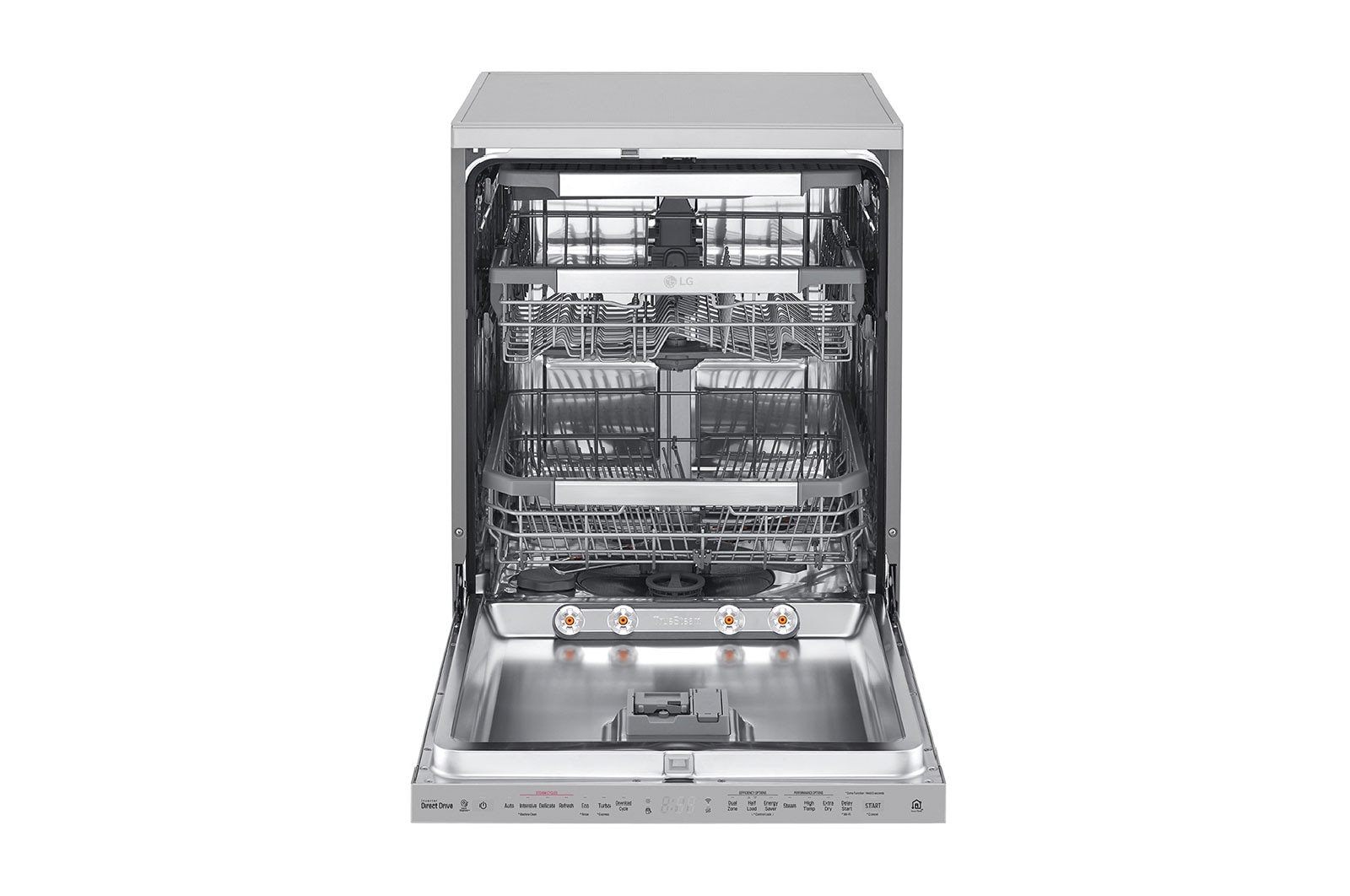 *مقارنةً بطراز LG الذي لا يستخدم البخار. استنادًا إلى حساب عدد بقع الماء بين طراز LG DFB325 (الذي يستخدم البخار) و DFB415 (الذي لا يستخدم البخار)، طبقًا لطرق الاختبار الداخلي من LG.