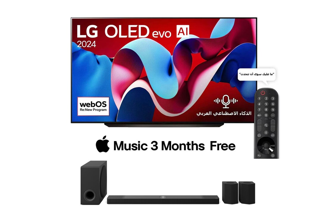 تلفزيون LG OLED evo AI C4 4K الذكي مقاس 83 بوصة المدعوم بجهاز التحكم AI Magic remote وتكنولوجيا الصوت Dolby Vision وواجهة webOS24 طراز عام 2024 + مكبر الصوت LG Soundbar للتلفزيون مع Dolby Atmos S95TR بنظام 9.1.5 قناة