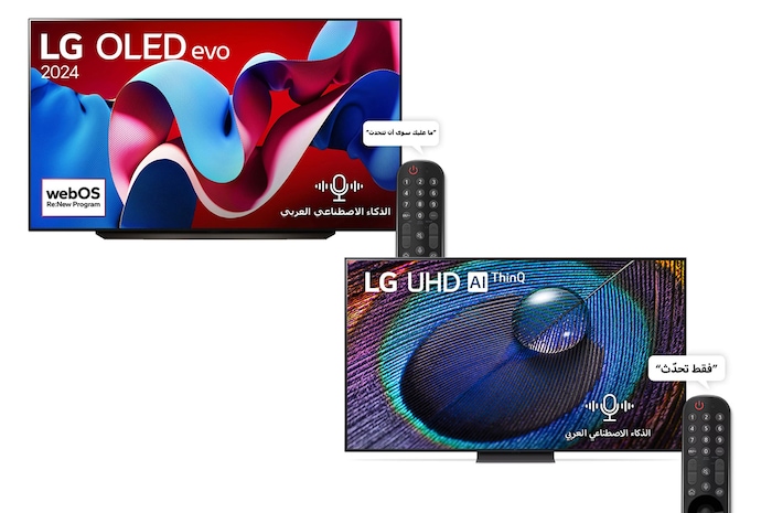 تلفزيون LG OLED evo C4 4K الذكي مقاس 83 بوصة المدعوم بجهاز التحكم AI Magic remote وتكنولوجيا الصوت Dolby Vision وواجهة webOS24 طراز عام 2024 + تلفاز UR91 الذكي فائق الوضوح من LG مقاس 65 بوصة بدقة 4K لعام 2023