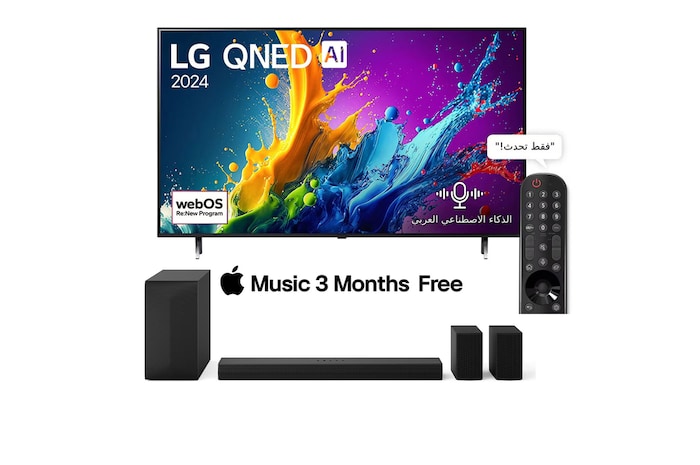 تلفزيون LG QNED AI QNED80 4K Smart TV 2024 الذكي مقاس 65 بوصة + مكبر صوت LG Soundbar S65TR للتلفزيون بنظام 5.1 قناة