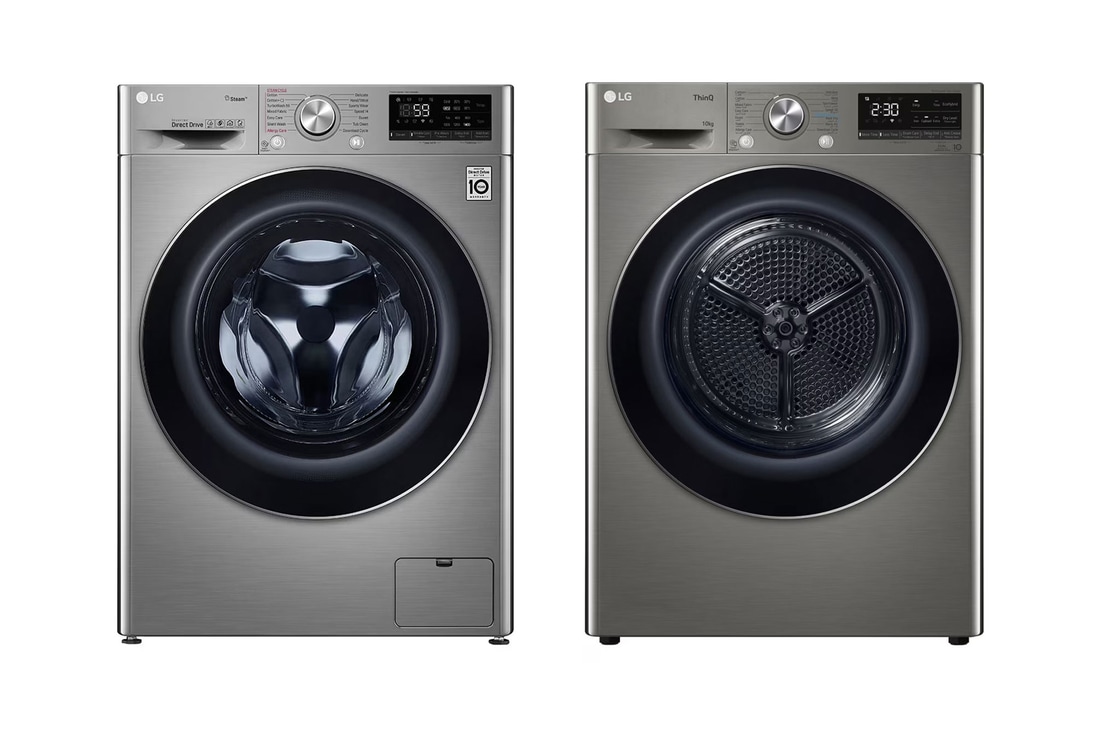 غسالة سعة 10.5 كجم ذات تحميل أمامي مع AI DD™، لون VCM + ذو عاكس مزدوج سعة 10 كجم | مع مستشعر تجفيف | العناية بالحساسية