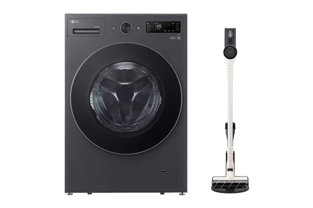 18kg Washer with 10Kg Dryer, Front Load washing Machine, 6 Motion DD, AI DD, Steam, TurboWash360, ThinQ, Matte Black color + LG CordZero™ A9 Air Vacuum Cleaner
