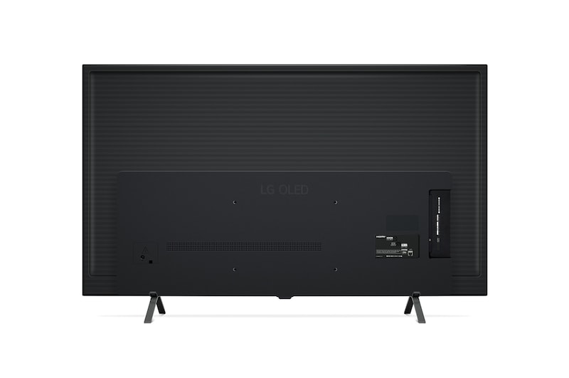 Vy från sidan av stativbenen på LG OLED A2. En LG OLED A2 står på en TV-bänk av trä i ett neutralt vardagsrum med växter och böcker. En LG OLED A2 med galleristativet står i hörnet av ett mintfärgat rum med flera växter. En LG OLED A2 står på en TV-bänk av trä i ett neutralt vardagsrum med en gitarr, en kamera och växter.