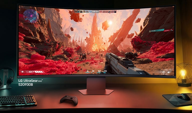 52-palcový LG UltraGear evo G9 (52G930B) predstavuje novú triedu veľkoformátových herných displejov. Ako najväčší herný monitor 5K2K na svete ponúka hráčom bezprecedentný výber veľkostí obrazovky v rámci série UltraGear evo. Veľký formát monitora je kombinovaný s bleskovou obnovovacou frekvenciou 240 Hz, čo zaručuje konzistentnú odozvu a vernosť obrazu.