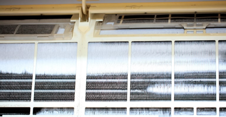 ฝุ่นและสิ่งสกปรกที่สะสมอยู่บนแผ่นกรองอากาศหรือคอยล์เย็นเป็นเวลานาน จะปิดกั้นการไหลเวียนของอากาศ เมื่ออากาศผ่านคอยล์ได้น้อยลง ความเย็นจะสะสมอยู่บริเวณนั้นมากเกินไปจนทำให้แอร์เป็นน้ำแข็งได้ ซึ่งนี่คือเหตุผลที่ช่างแอร์มักแนะนำให้ล้างแอร์ และเปลี่ยนไส้กรองอย่างสม่ำเสมอทุก 3-6 เดือน