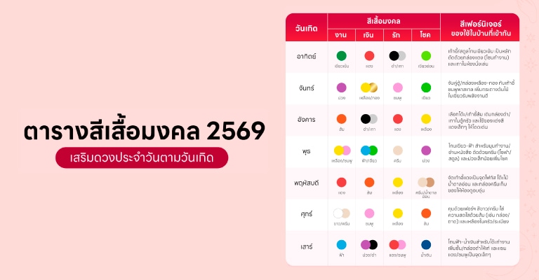 สรุปครบ ‘สีเสื้อมงคล 2569’ ใส่สีไหนช่วยเสริมดวง งาน เงิน รัก ให้ปังในปีนี้!