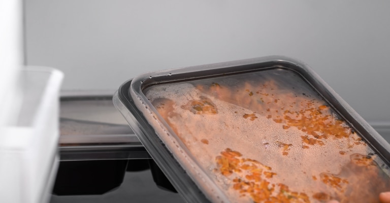 เมื่ออาหารที่ยังร้อนถูกใส่เข้าไปในตู้เย็น อุณหภูมิภายในตู้จะสูงขึ้นทันทีตู้เย็นจึงต้องเร่งทำความเย็นมากกว่าปกติและทำให้คอมเพรสเซอร์ทำงานหนักขึ้นนั่นเอง