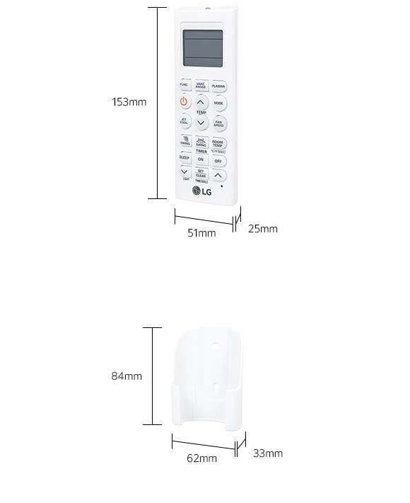 Remote Controller: 50 x 153 x 25, Holder: 60 x 60 x 32