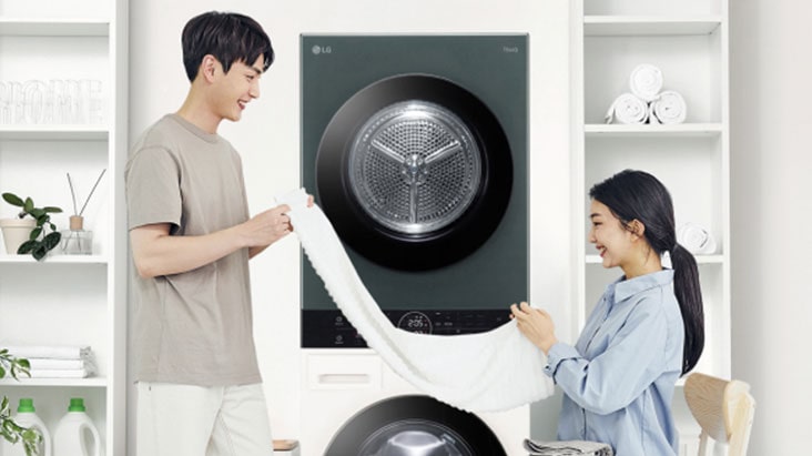 ประหยัดเวลาและเครื่องอบผ้าของ LG ที่จะซิงค์และเลือกโปรแกรมการอบแห้งอัตโนมัติ