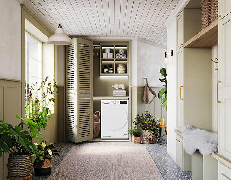 - LG DUAL Inverter Heat Pump™ kurutma makinesi iki silindirle ,ısı pompalı kurutma makinesi tek silindirle çalışır.