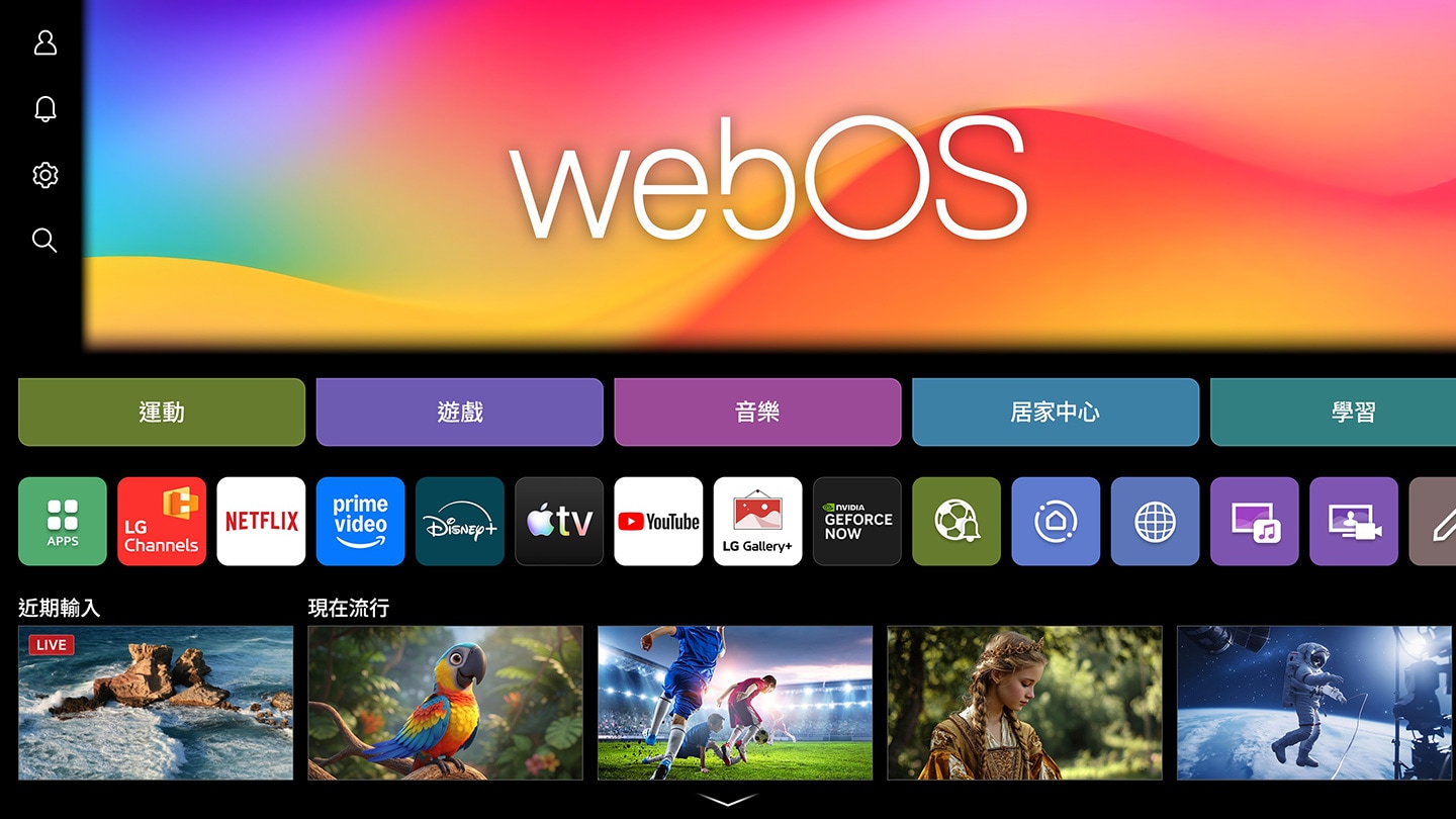• 免下載:內建於 LG webOS 中3,無須下載、安裝APP。