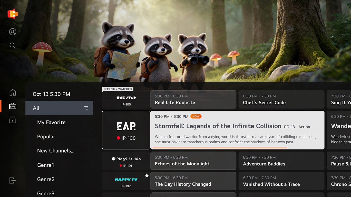 • 隨開隨看:頻道式呈現讓切換更快,想看就開、想換就轉台,貼近收視習慣。