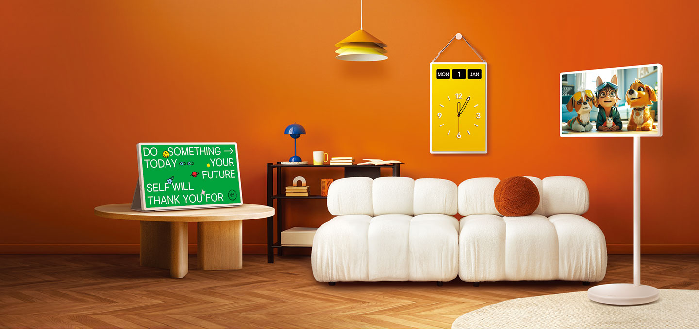 ● LG StanbyME 2 閨蜜機第二代:延續產品經典的移動式設計,再增加「拆卸、壁掛、平放」等多元使用方式,完美滿足全家的娛樂場景。不論是推到床邊成為睡前追劇螢幕,或放在客廳暢玩遊戲,都能依需求靈活切換;搭配折疊式立架配件還可化身大型平板,讓家庭娛樂不中斷。多型態的設計,無須固定機櫃,大大降低裝潢上的工程或限制,隨時隨地都能靈活運用,讓小宅生活的每一處角落都能發揮最大坪效。