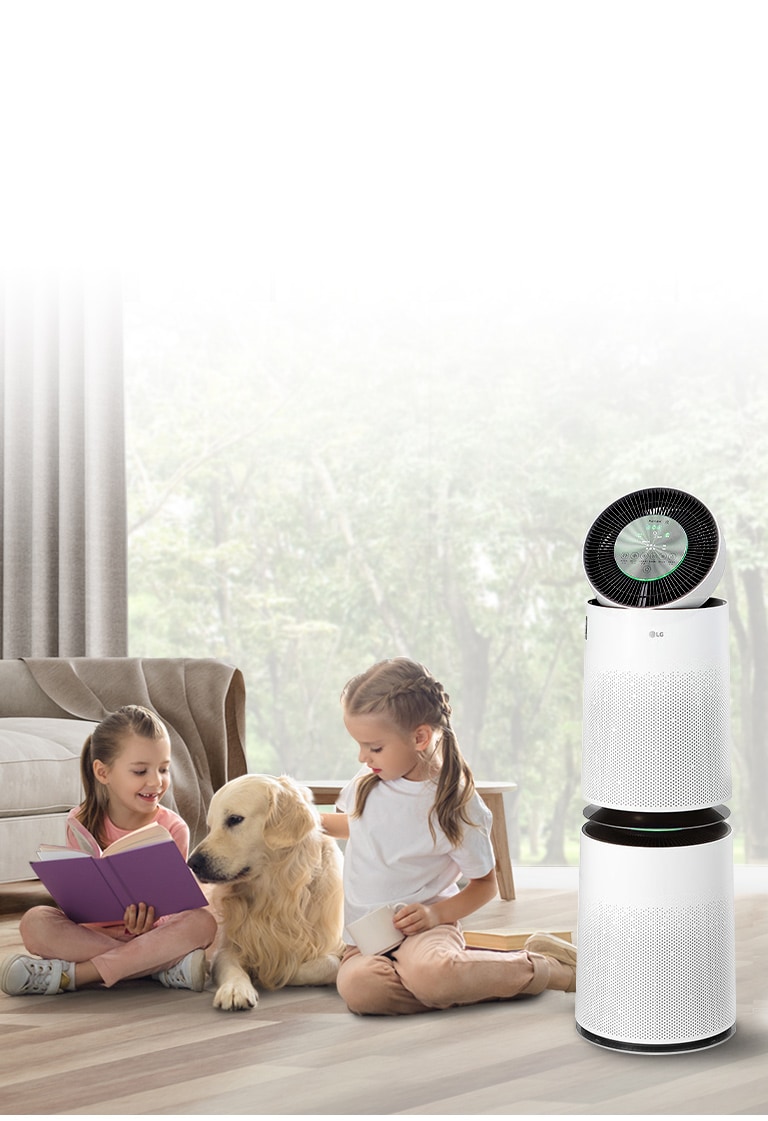 *由LG國際試驗室和KIMM韓國機械研究院所測試;產品型號:PuriCare™AS281DAW;實驗條件:203立方公尺(10.6 x 7.1 x 2.7公尺)、24.7°C、相對濕度37%;測試顆粒尺寸:0.3㎛直徑的煙塵或氯化鉀(KCI)