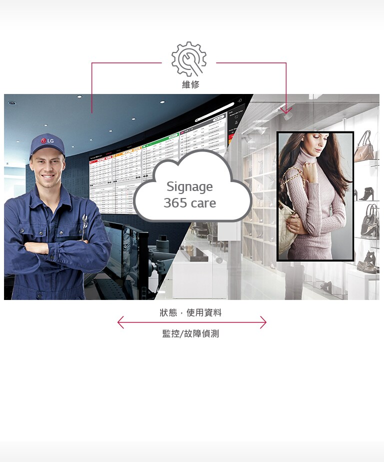 *「signage 365 Care」服務的可用性因地區而異,因此請聯絡所在地區的 LG 銷售代表,瞭解更多詳細資訊。