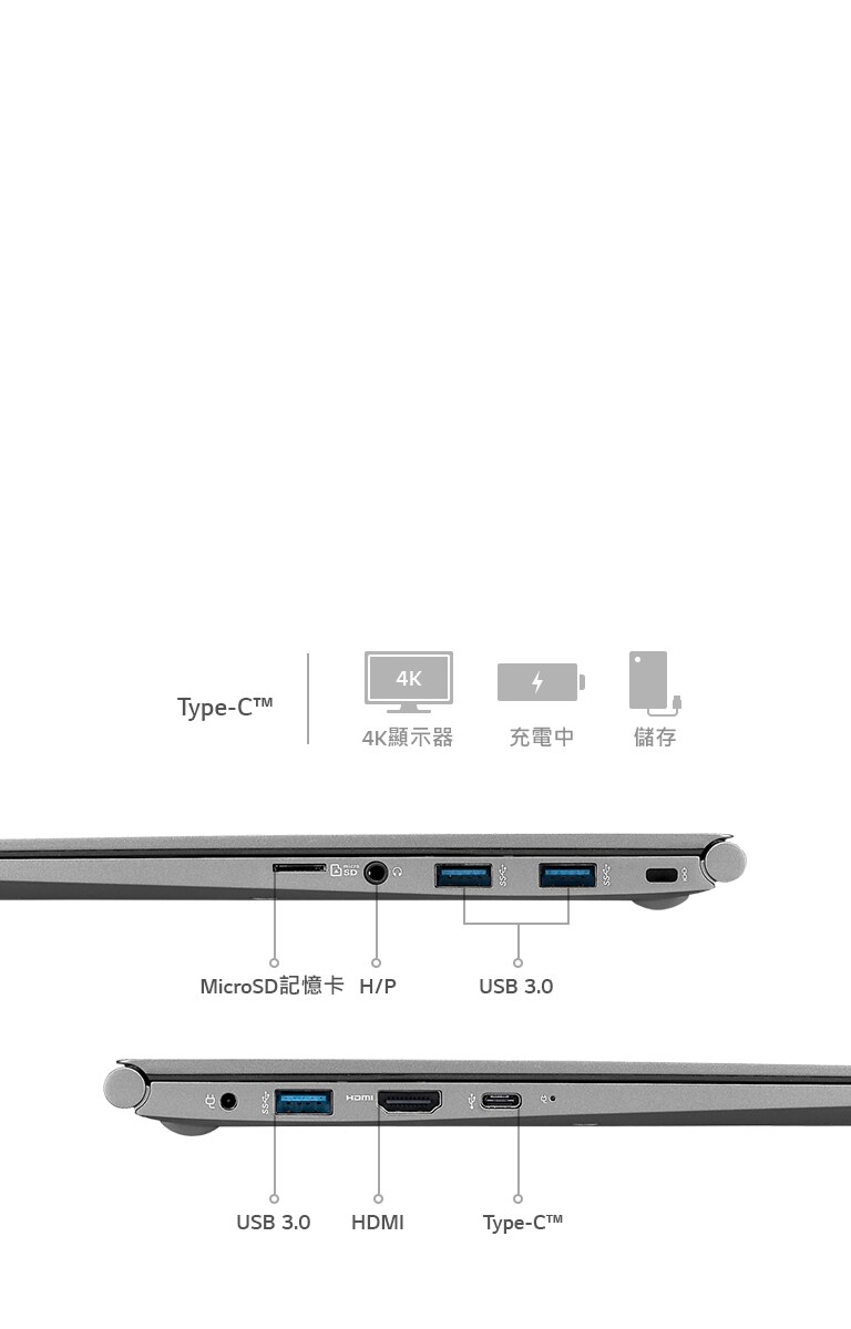 HP-Out (4Pole Headset, US type)<br/>USB3.0 (x3)<br/>USB3.0 Type C (x1, Fast Charge/ Sleep& Charge)<br/>HDMI<br/>DC-In