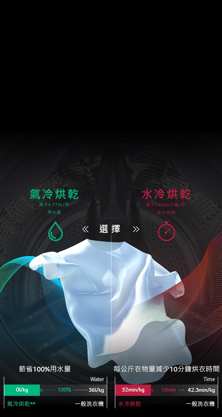 ** 每公斤洗衣量消耗 1 L 水冷凝,每公斤洗衣量消耗 1.51L 水清洗濾器