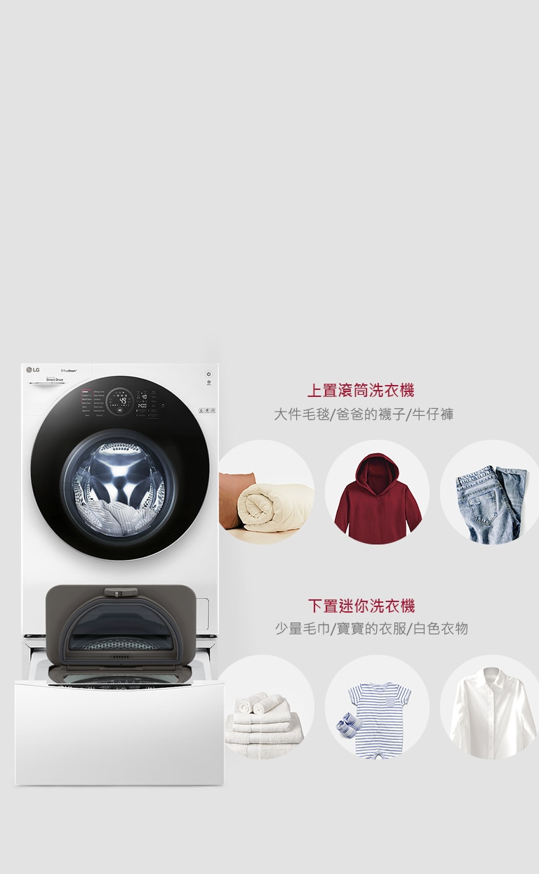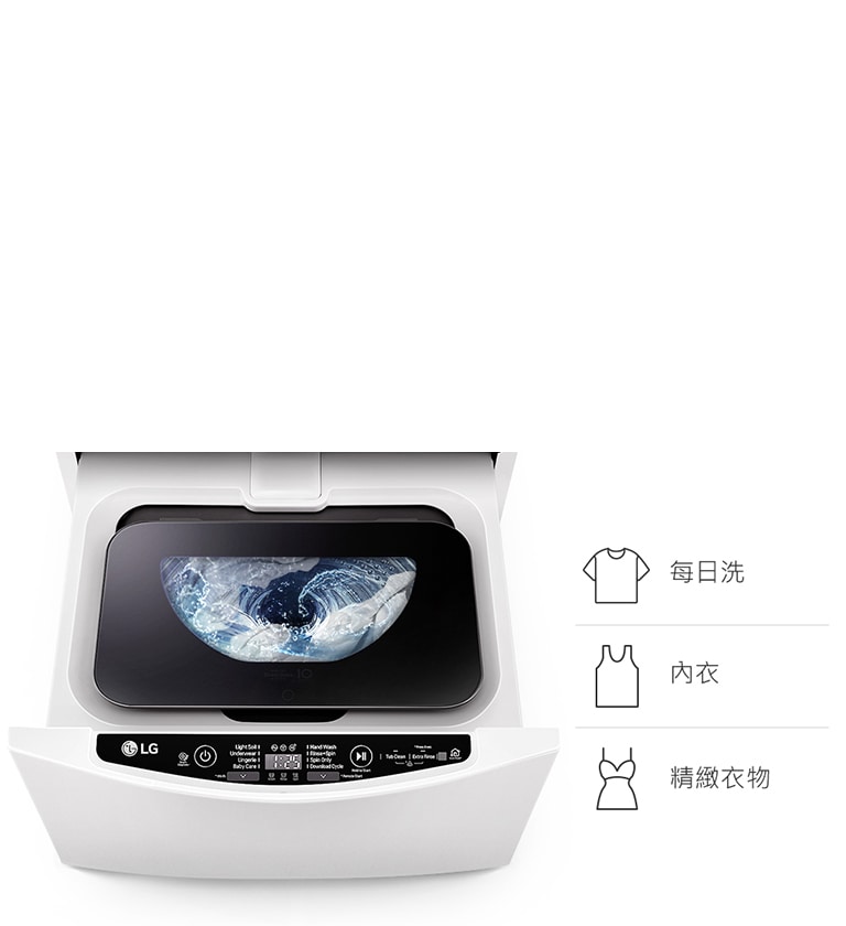 *經 LG 實驗室測試2 公斤迷你洗衣機(最大洗衣量是2 公斤):選擇標準行程,於49 分鐘內洗衣完成。
