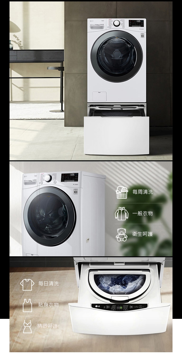 上置滾筒洗衣機清洗一般大量衣物,下搭TWINWash™Mini迷你洗衣機,
