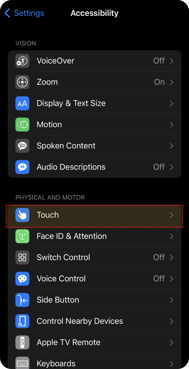 在「無障礙功能」中選擇「顯示和文字大小」。