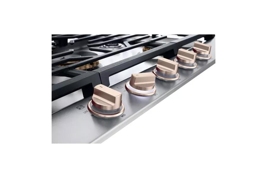 Keep the focus on your filet—these white LED backlit knobs immediately tell you when each burner is on or off with just a glance while adding a little bit of wow with every turn.