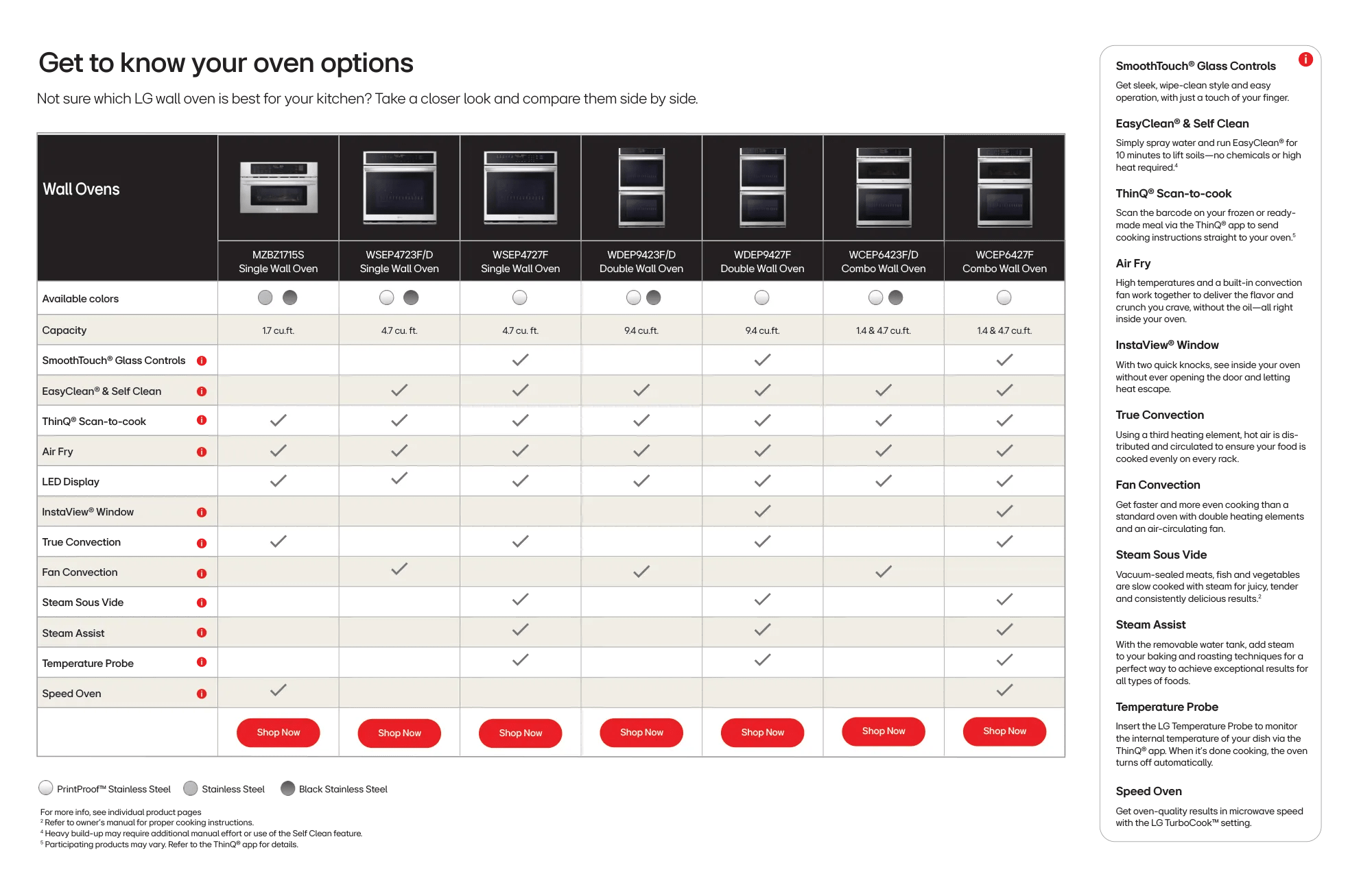 Not sure which LG wall oven is best for your kitchen? Take a closer look and compare them side by side below or download as PDF.