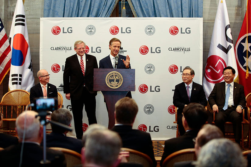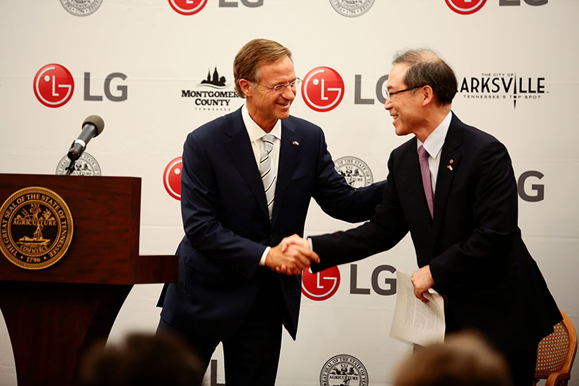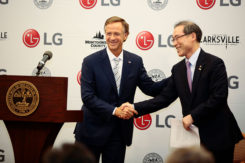 Governor Bill Haslam said, "We are proud to welcome LG to Tennessee and thank the company for creating 600 valuable new jobs in Clarksville. LG’s decision to establish new manufacturing operations in Tennessee is a testament to the business-friendly environment, ideal location and highly-skilled workforce we offer to companies around the globe. I look forward to building a lasting partnership with LG in the years ahead as we work together to make Tennessee the No. 1 location in the Southeast for high quality jobs."