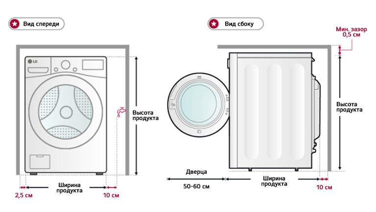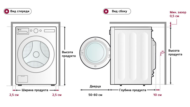 Прежде всего убедитесь, что пространство соответствует размерам стиральной машины.